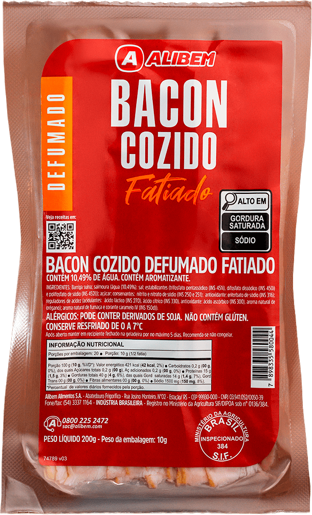 O Bacon em Fatias da Alibem é produzido a partir da barriga suína, cuidadosamente selecionada para garantir a proporção ideal entre carne magra e gordura. Passa por cura e defumação controlada, preservando aroma e sabor característicos. Cortado em fatias uniformes, mantém textura firme e consistência, sendo ideal para grelhar, assar, fritar ou incorporar em receitas que exigem praticidade, sabor marcante e padronização confiável da Alibem.